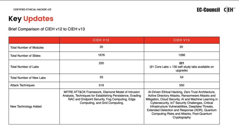 Modules: CEH v13 keeps its 20 modules, however the information has been updated to take into account the most recent developments in cyberattacks.