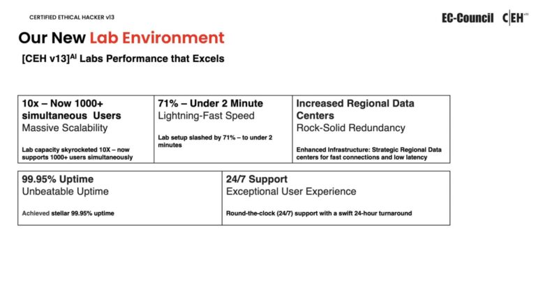 There are now 550 assault tactics covered, up from 519 before. Deepfake threats, ransomware assaults, AI-based cyberattacks, and Active Directory attacks are examples of new tactics. These improvements guarantee that students are ready for the complex threats that are prevalent in today’s cybersecurity environment.