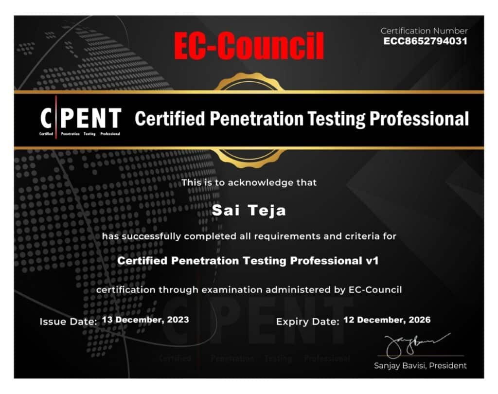 - EC-Council Certified CPENT